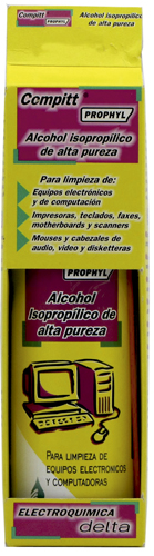 Alcohol isopropílico de alta pureza, limpiador para propósitos generales, pureza 99.9%. De rápida evaporación, no deja residuos.